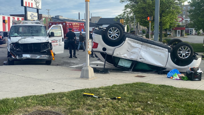 La policía dice que un hombre de 34 años conducía una camioneta cuando no se detuvo en el semáforo en rojo y chocó con un SUV, haciendo que se volcara y quedara sobre su techo.