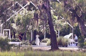 La revista Hola publicó algunos detalles de la ceremonia y las primeras imágenes del enlace. En unas se observa a los recién casados caminar, tomados del brazo, hacia el altar ubicado a orillas del río North Newport.