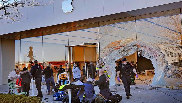 Más de una docena de ambulancias acudieron a la calle Derby sobre las 10:45 horas del lunes después de que un Toyota 4Runner se estrellara contra el escaparate de la tienda.
