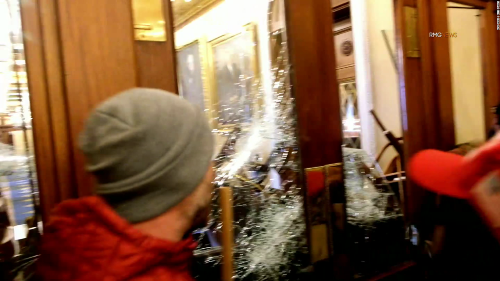 En el video se puede ver a los agitadores rompiendo vidrios, se puede escuchar a alguien decir «tiene un arma». Momentos después, se escucha un disparo.