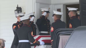 Los residentes describieron como un homenaje conmovedor el hecho de que los marinos sacaran el féretro y lo introdujeran en la funeraria, dando a los seres queridos un momento a solas con Demers.