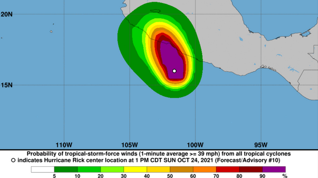 CIUDAD DE MÉXICO (AP) – El huracán Rick se dirigía el domingo (24 de octubre) a la costa sur del Pacífico mexicano y se pronosticaba que llegaría a tierra el lunes por la mañana.