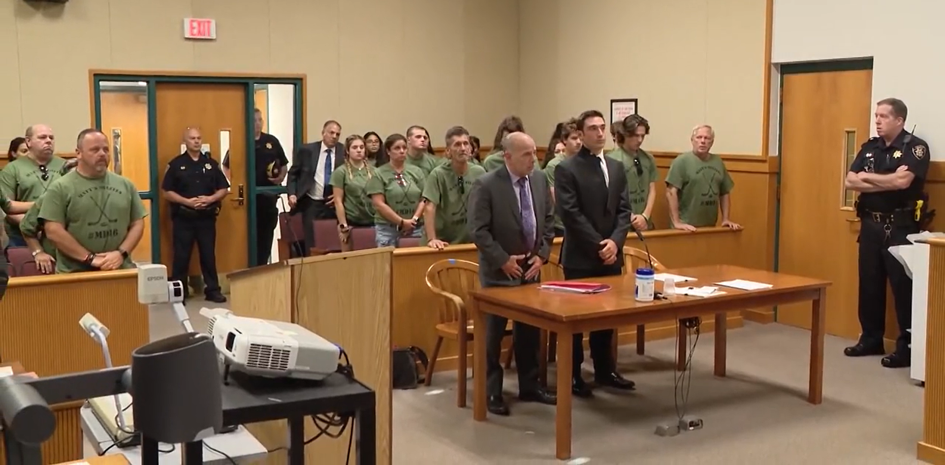 Matt Dennison y Kevin MacDonald, ambos de 17 años, se dirigían a una pista de hockey de West Warwick en febrero cuando Krajewski chocó con su coche en Ted Rod Road, en Exeter, según la policía.