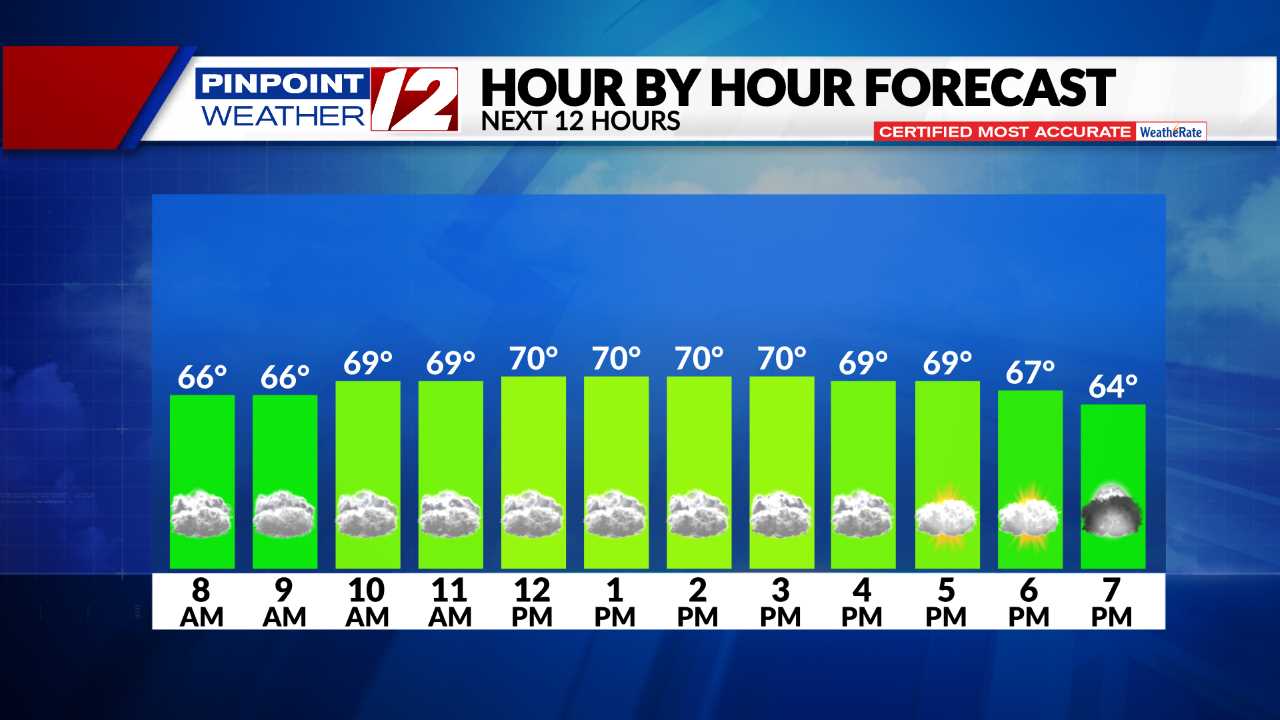 Después de algunos claros parciales esta tarde, la noche será mayormente nublada y seca con algunas nieblas parciales al amanecer. Las temperaturas mínimas bajarán hasta los 50º.