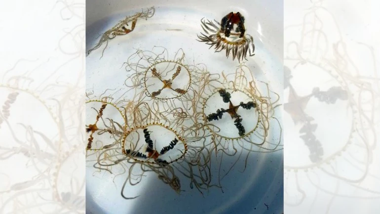 Estas medusas son difíciles de detectar en el agua porque sus cuerpos son en su mayoría transparentes y están marcados con una cruz naranja-marrón.