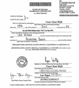 Este es el certificado de matrimonio de Jennifer Lopez y Ben Affleck