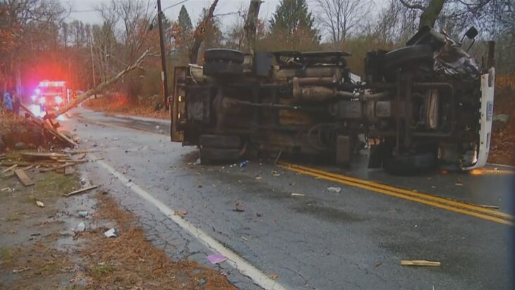 También volcó un camión de basura, derribando las líneas eléctricas en East Greenwich.