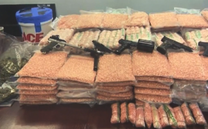 Alrededor de 1.000 pastillas contenían fentanilo. Las autoridades también recuperaron 11 kilogramos de metanfetamina en polvo, 250 gramos de crack, 15.000 dólares en efectivo y siete pistolas, entre ellas dos fantasmas y dos con números de serie borrados.
