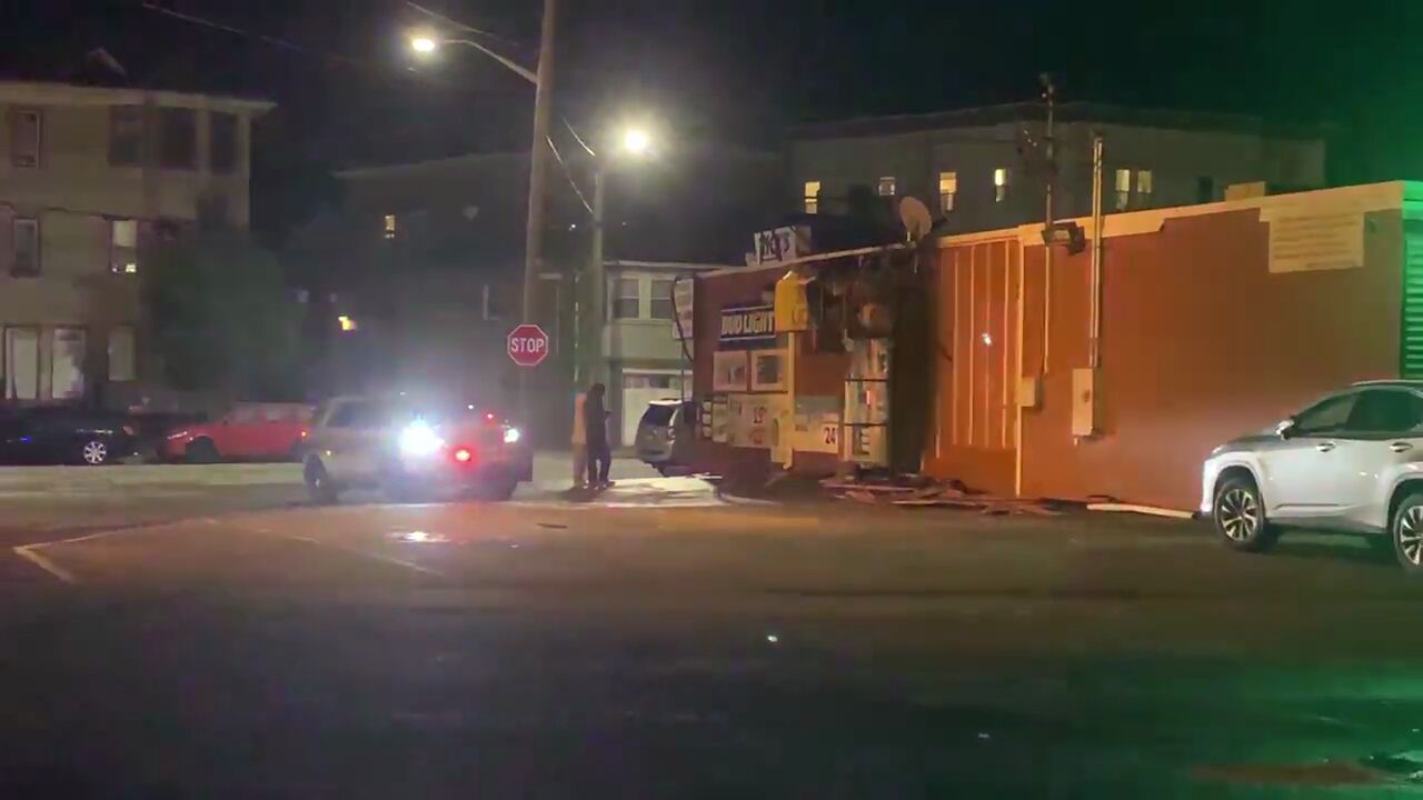 Ese edificio no resultó dañado, pero las llamas causaron importantes daños en el exterior de Rick’s Liquors, en Broadway.