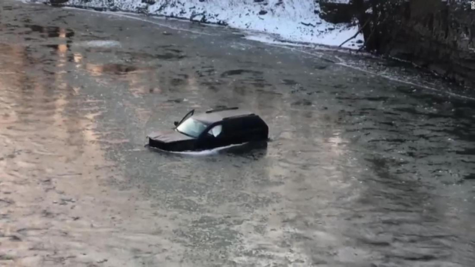 Eso fue lo que gritó un hombre en Charles City, Iowa, después de que su automóvil se hundiera en un río helado.