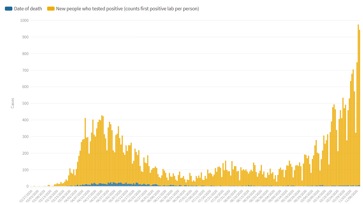 El estado ha registrado un total de 40.764 casos positivos de COVID-19 y 1.250 muertes desde que comenzó la pandemia.