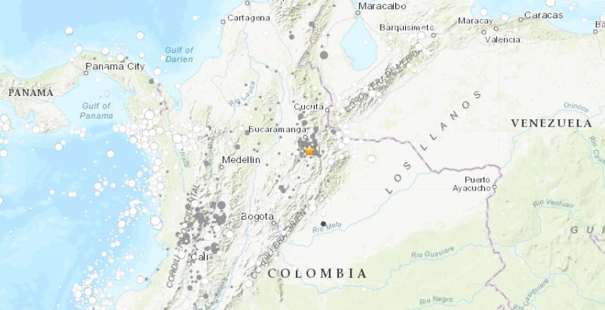 El foco sísmico estuvo localizado a 153 kilómetros de profundidad y el epicentro estuvo ubicado a 45 kilómetros al norte-noroeste de Bucaramanga.