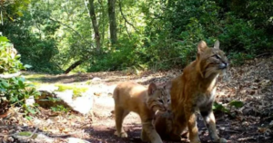Una interacción entre un gato montés hembra y su gatito fue grabada por una cámara de rastreo instalada en el sur de Rhode Island.