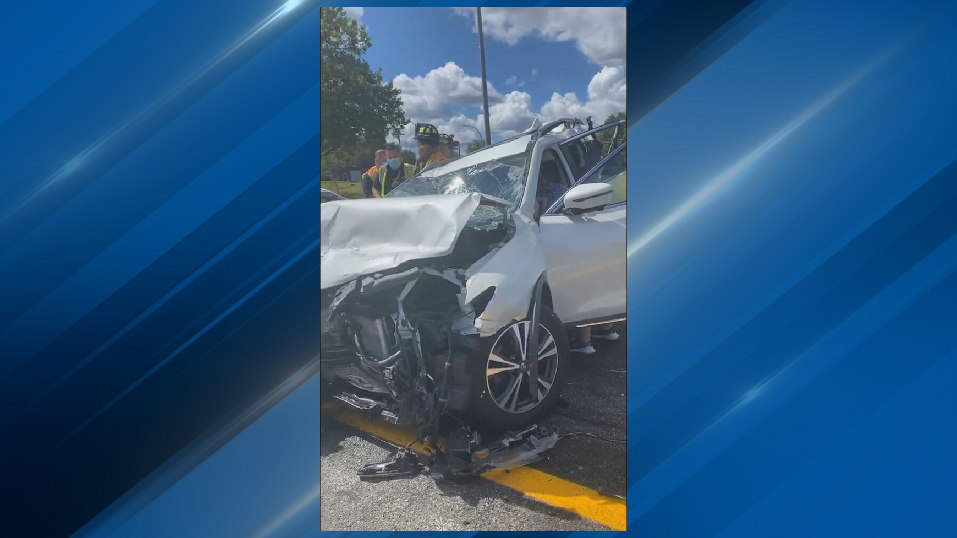 La policía dijo que un SUV blanco estaba detenido en el tráfico de la Ruta 146 en el carril de alta velocidad por el paso elevado de la calle Almirante cuando fue chocado por detrás por un camión de caja.