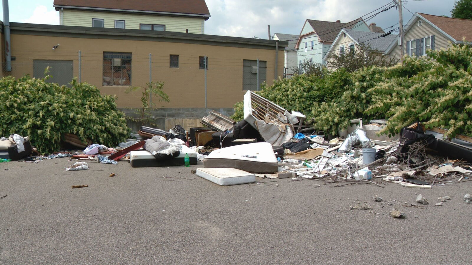 PROVIDENCE, R.I. (WJAR) – Colchones viejos, sofás, neumáticos y botellas de cerveza se están acumulando en un terreno baldío en la calle Eudora en Providence.